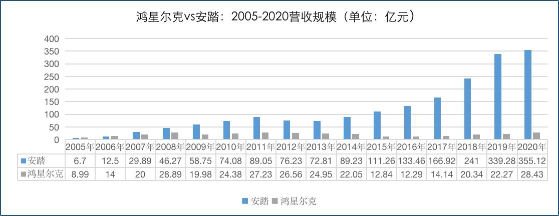 2005年上市时,鸿星尔克年营收8.99亿元;同年,安踏的营收只有6.7亿元。