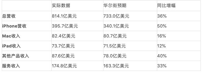 (以下文中第二季度均为自然季度,对应于苹果2021年第三财季。)