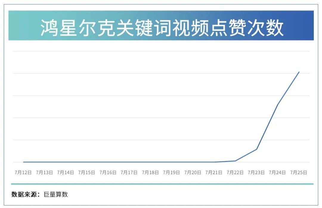 22日前,品牌相关视频内容的日点赞总量均未过万,数据表现不及中腰部KOL;但到7月25日,单日视频播放量已经达到2.03亿,成为平台内最受用户追捧的品牌。