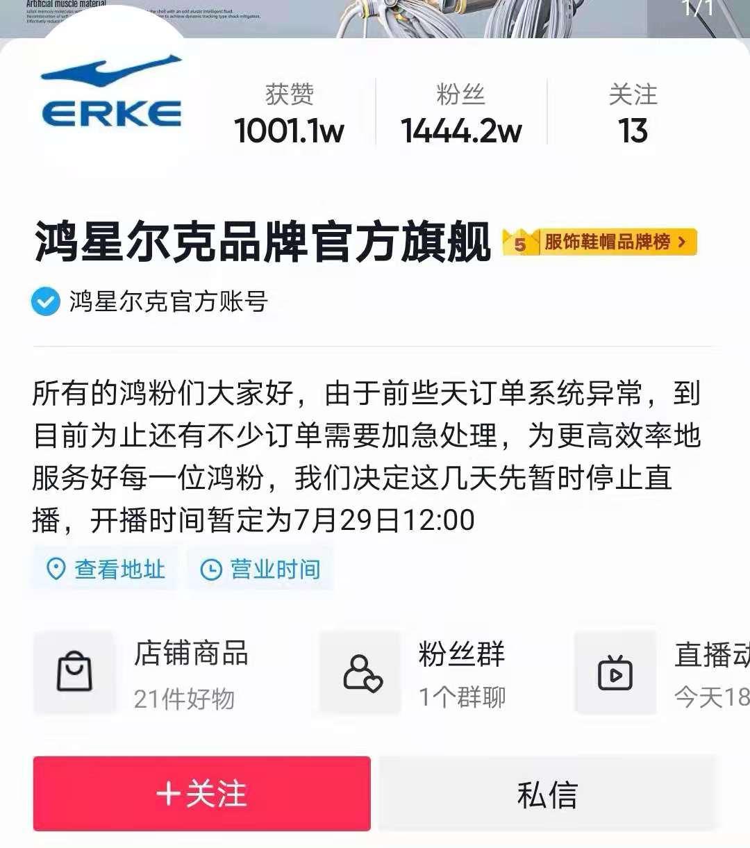 甚至这几天,鸿星尔克不得不宣布暂时关闭直播至7月29日12点,给出的理由是“不少订单需要加急处理”。