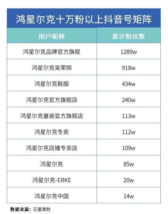 其次,也要明确以矩阵化方式运营新媒体账号的重要性。比如目前鸿星尔克官方在抖音上的账号已经多达20个,其中不少账号都在近几天快速增粉。