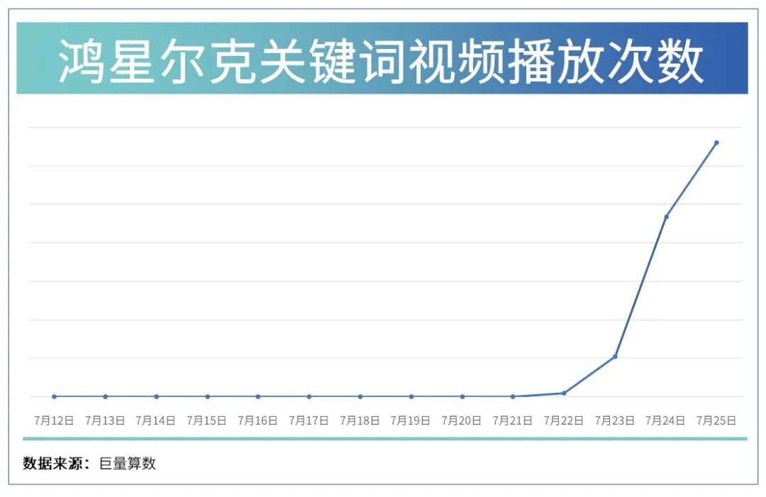 以7月22日晚9点首个抖音热搜出现算起,鸿星尔克相关短视频内容日均播放量从万级到亿级的巨幅增长,仅仅发生在27个小时之内。