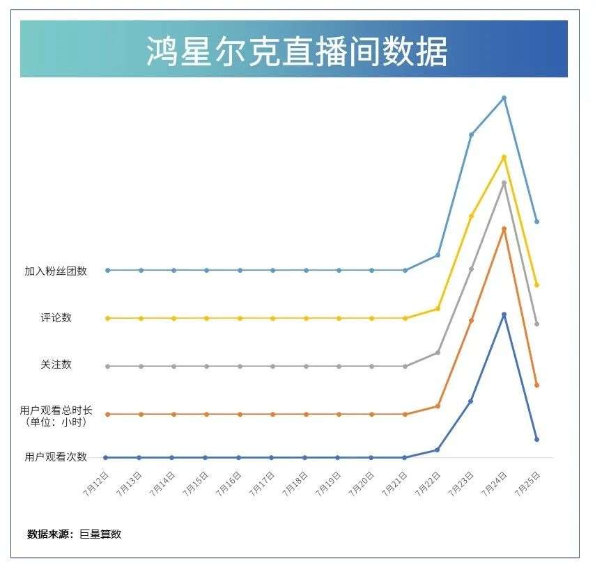 话题登上热榜的第二天,有5632万人涌入直播间,119万小时的单日观看总时长超越过去四到五年的总和。其中,还有248万人沉淀为鸿星尔克官方账号的关注者;