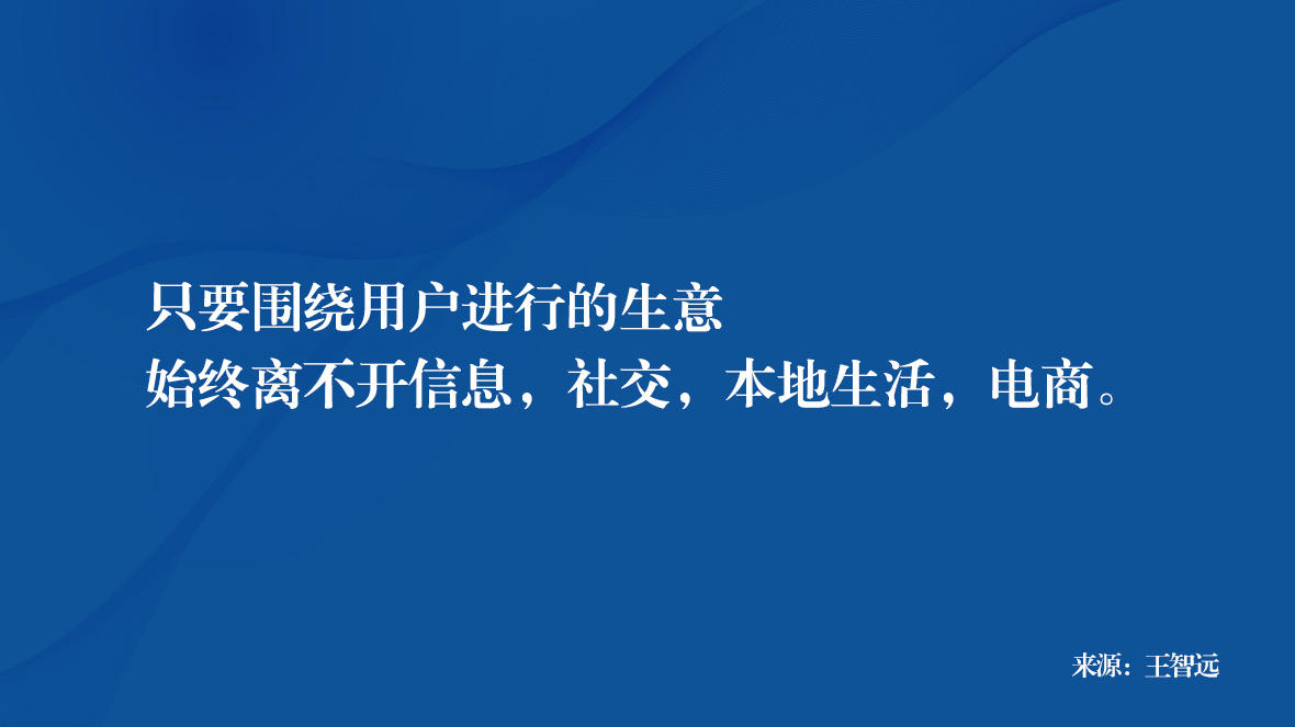 按照发展史来看,我把中国互联网的发展总结为信息,电商,社交和本地生活四个模块,把时间拉长到现在,只要围绕用户进行的始终离不开这四个方面。