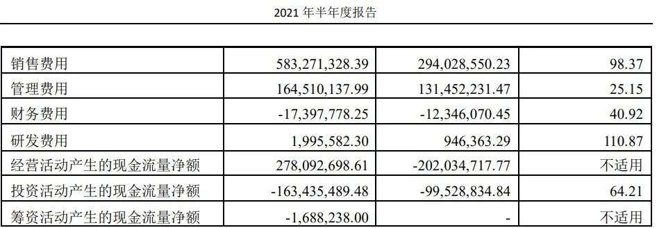 今年上半年,水井坊的销售费用高达5.832亿元,同比增长98.37%。5.832亿的数字,比同期净利润还多54.69%。