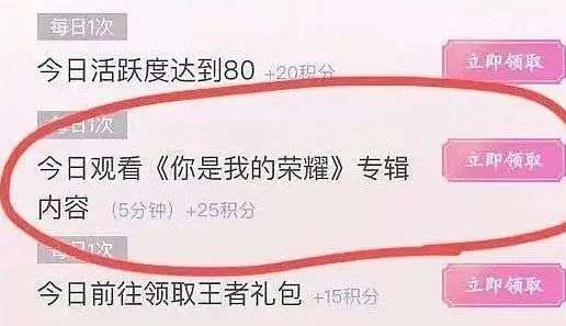 像此次的《你是我的荣耀》,便由于大量的游戏联动内容,被部分网友调侃为“王者荣耀宣传片”。剧集开播后,《王者荣耀》在准备了配套皮肤福利的同时,还在获取皮肤任务中推出了收看《你是我的荣耀》专辑内容特殊任务。