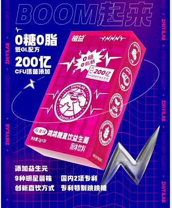 为提升食用体验感, 跳跳糖直饮益生菌实现了速溶性能和口感, 直接口服无需冲泡 ,改变了目前益生菌粉粘牙糊口的口感;