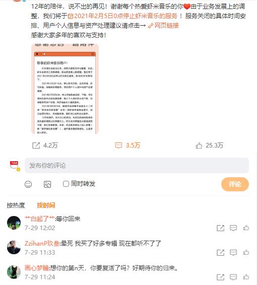 近日,百余人来到虾米音乐官方微博下报喜,俨然一场充满感情的扫墓活动。