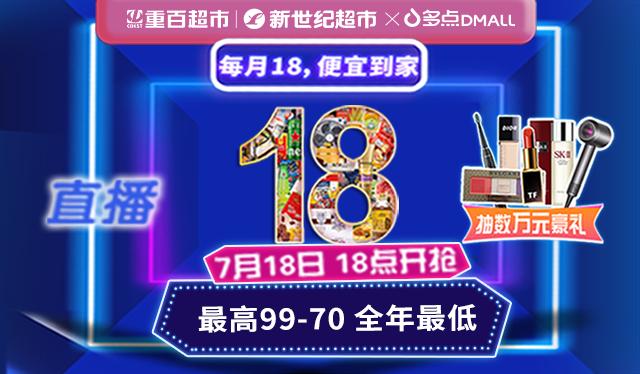 7月18日,重百超市和新世纪超市利用全渠道数字零售服务商多点Dmall的D-live直播中台系统,携手30多家品牌打造“每月18,便宜到家”直播品牌日,这也是重百首次尝试主会场+分会场的直播模式,创造了直播商品线上销售170.5万的骄人战绩,相较重百上一场大型综合直播,GMV环比增长3537.32%,直播访问量环比增长838.79%,其中新访客环比增长244.43%。