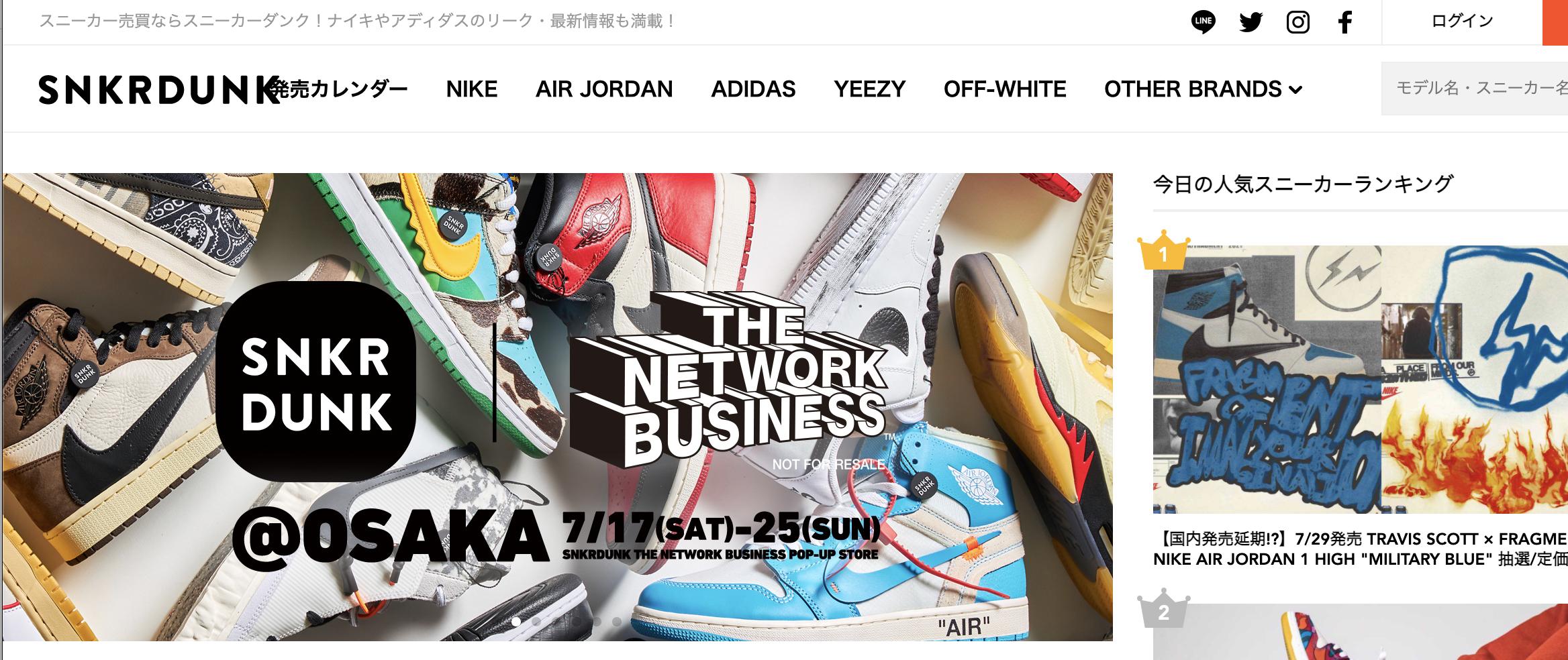 SNKRDUNK网站分为三个板块:销售区域、新闻网站和交流社区。与国内二手潮流电商平台得物模式相似,用户可以在SNKRDUNK上预约购买乔丹、耐克、阿迪等品牌新品,同时也可以转售和购买各品牌运动鞋。SNKRDUNK与日本服饰认证机构FAKE BUSTERS合作,在转售订单达成后,卖家需要先把鞋子寄到FAKE BUSTERS鉴别真伪,平台才会向买家发货,验证过程在1-4天左右。
