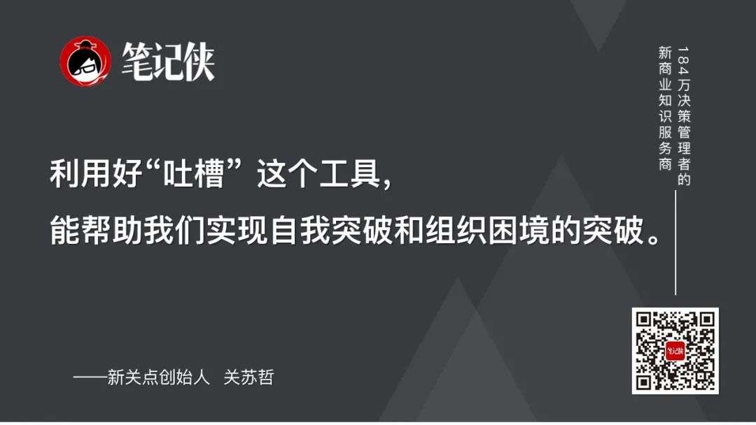 成长需要我们放下自我,主动走出舒适区。利用好“吐槽”这个工具,能帮助我们实现自我突破和组织困境的突破。