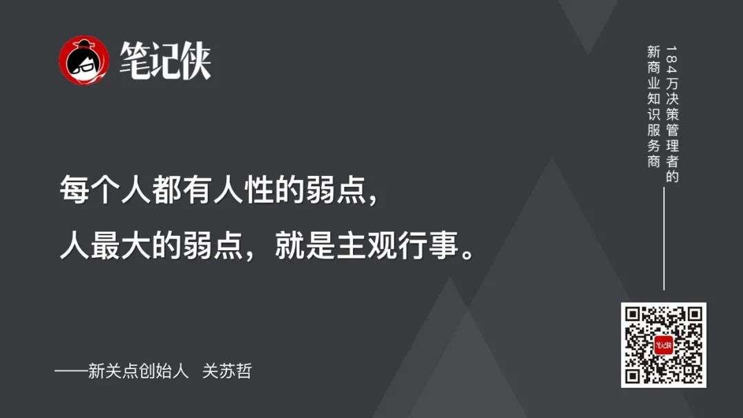 每个人都有人性的弱点,人最大的弱点,就是主观行事。人很少能够反思自己的局限性,即自我限制。
