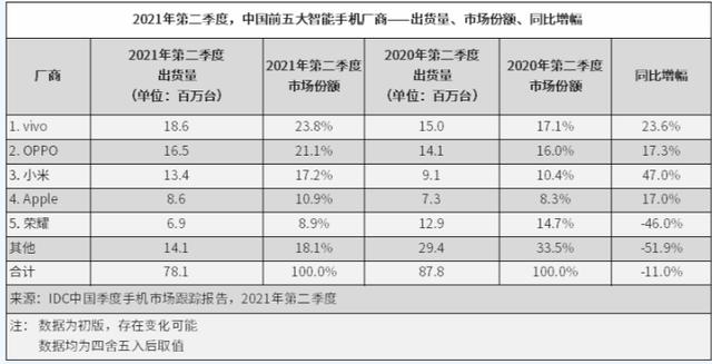 最后,就是当下的手机市场已经逐步趋向饱和,在智能手机刚刚面世的几年内,由于手机销量的激增,导致不少供应商疯狂扩张自己的生产规模,并通过打价格战的方式拉低了整个市场的价格。 然而近几年手机市场已经从增量市场往存量市场转变,据IDC发布的数据显示,直到2021年第二季度,中国手机市场出货量仍同比下降11%。