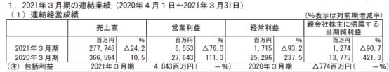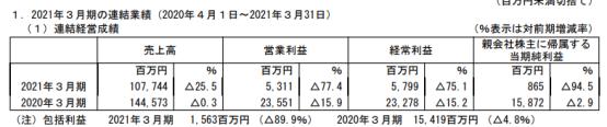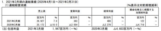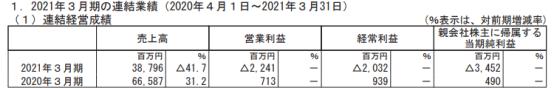 2021年3月期(2020.4.1-2021.3.31)三协的销售额581亿2900万日元,同比减少25.9%;营业利润65亿8700万日元,同比减少47.5%;经常利润74亿8800万日元,同比减少44.4%;归属股东当期纯利润57亿4900万日元,同比减少55.9%。