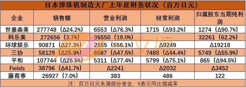 一览日本各大弹珠机制造企业上年度经营状况,除环球娱乐、藤商事的弹珠机事业凭借经典动画IP作品实现增收增益外,弹珠机事业全面处于减收减益中,整体市场环境萧条。