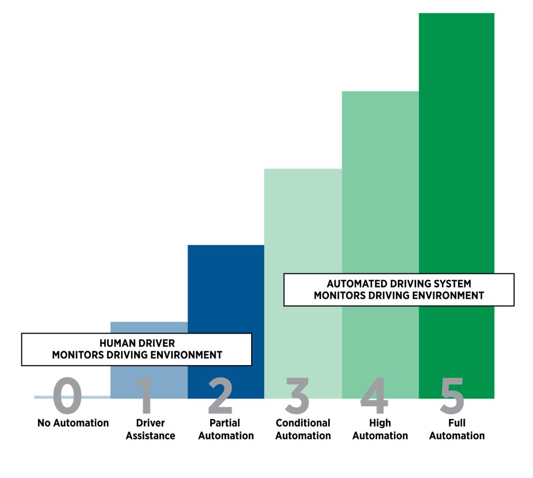 首先要了解“自动驾驶”的真正含义?美国交通部国家公路运输安全局定义了5个级别的自动驾驶(基于SAE国际标准J3016)。这些定义更新于2016年的10月: