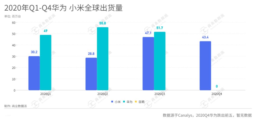 在智能手机赛场,华为也被迫减速。数据机构Canalys近期发布的数据显示,全球手机出货量排名出现较大变化:前五名分别是三星、小米、苹果、OPPO、vivo,其中小米增长速度最快达到83%,而华为早已跌出前五,将手机市场,尤其高端手机市场让给三星、苹果。