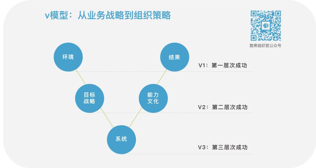 如果你还记得首席组织官的组织绩效V模型,左边最上是环境,然后是目标战略,最下面是系统,右边中间是能力文化,再上面是结果,我觉得左边的目标战略还有右边的能力文化都非常重要。