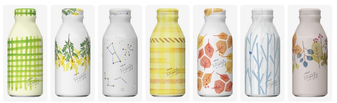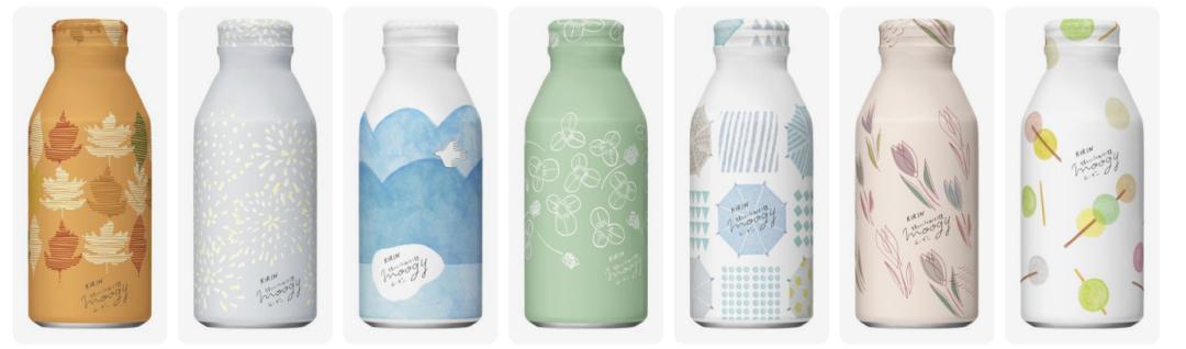 麒麟有一个专为女性设计的混合大麦茶系列“moogy”,整个包装设计可爱满分。清新的配色和图案、手写体的文字、瓶身磨砂的质感,moogy的包装视觉上给人舒适的感觉。此外,moogy的包装每隔一段时间就会上新,但保持一致风格。