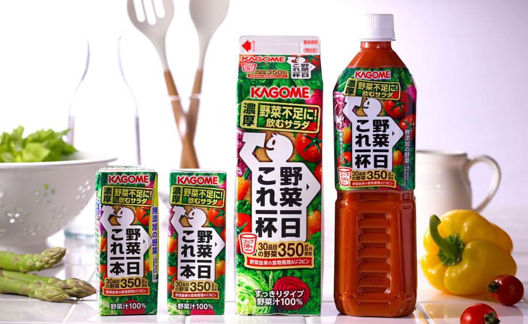 博拉比思参与设计的可果美野菜一日番茄汁,瓶身上有一个卡通的小人形象。这个小人举着一个杯子在喝果蔬汁,身上写着“これ一杯野菜一日(一杯这个(补充)一天蔬菜)”。这个小人虽然笔触简单,但很到位地传达了喝一杯补充一天蔬菜的产品定位。而且在一众真实图案的果蔬汁包装中,这个白色小人尤为突出。