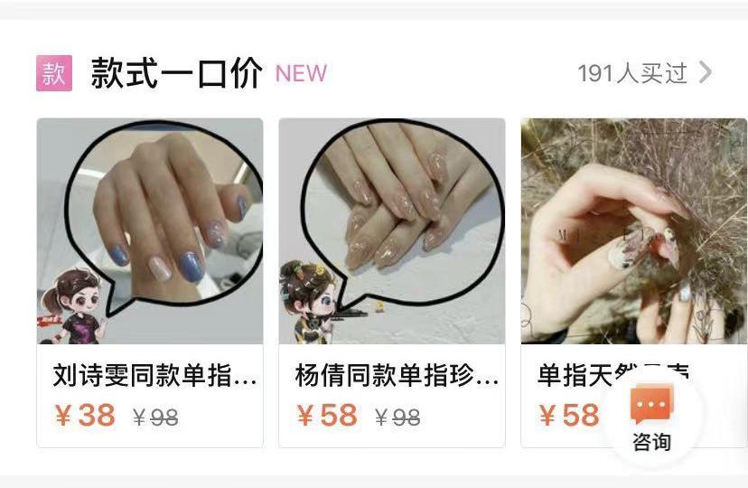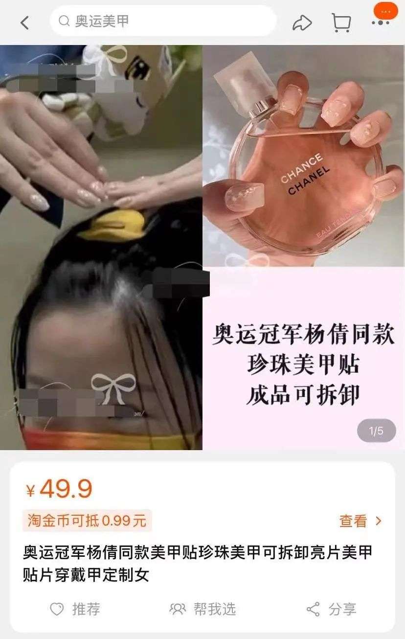 只要和珍珠沾点边,都被商家打上了#杨倩同款美甲#的标签。不仅衍生出各种产品形态,还贴心设置了不同价格区间的选择,丰俭由人。