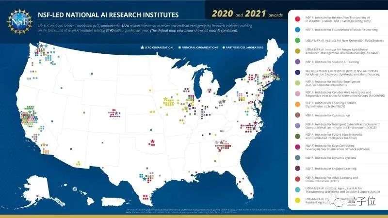 美国国家科学基金会(NSF)刚刚宣布,在2020年首轮资助7个人工智能研究中心基础上,这一次将覆盖范围扩大到了美国40个州。