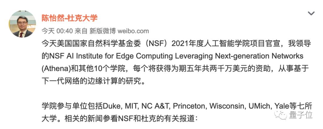 我们还发现,11个项目中有一项由杜克大学陈怡然教授领导,主要聚焦下一代网络的边缘计算。