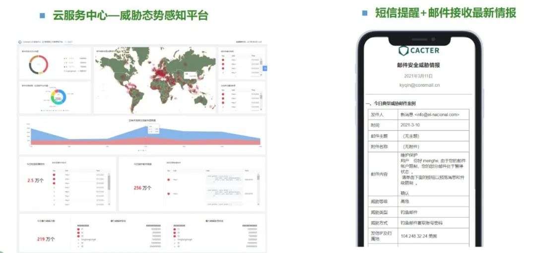 1.云服务中心——威胁态势感知平台2.短信提醒+邮件接收最新情报3.负责合作资源整合及渠道开发