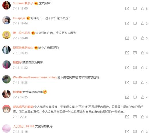 然而其中也夹杂部分质疑,有网友评论,“文案中总是提及打针、美甲、化妆,自然是美,这些就不是美了?”“文案总觉得有点儿毛病。”可见,要真正满足消费者的心理,品牌方还需从多方面进行考量,从女运动员的自然美入手,也不必非将“人工美”与之对比,真正的多元美就是要接纳不同的美。