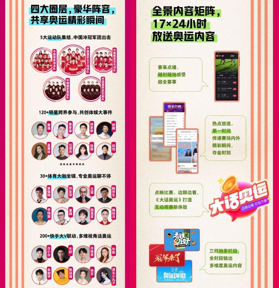 作为2020奥运持权转播商,快手借助其短视频平台的优势,以其独特属性,搭建奥运全景内容矩阵,17×24小时持续放送精彩内容,并邀请众多明星、体育大咖、快手大V共话奥运,让更多人参与到奥运中来,真正实现快手所提倡的“我们一起赢”。