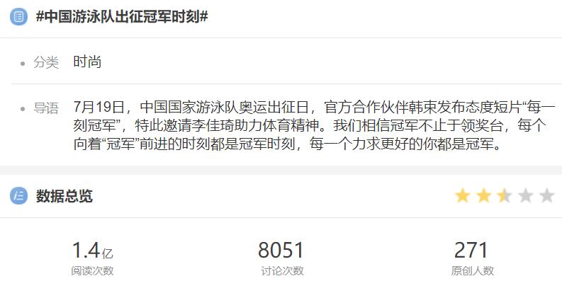 提起韩束,想必大家最近都不陌生。4月与中国游泳队签订合作,在与吴亦凡解除代言后,东京奥运会来临之际,韩束再次在微博官宣成为中国游泳队官方合作伙伴,这一波可谓是借势而为,乘胜追击,自然成为了近期国货美妆品牌中热度最高的品牌。这不,趁热打铁,韩束又联合新世相发布了品牌态度短片《每一刻冠军》,继续将热度发酵,使品牌态度深入人心。