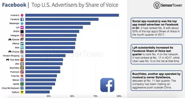 TikTok的前身musical.ly 是 2018 年第一季度最大的广告主。