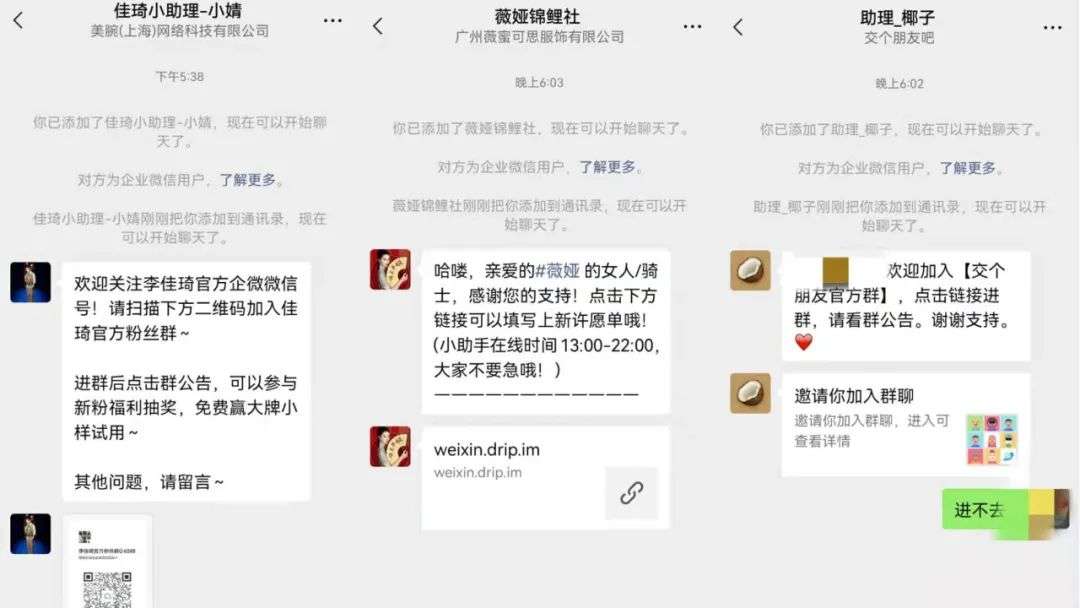 新腕儿发现,以薇娅、李佳琦、罗永浩在内的主播都开始布局私域流量,通过微信公号链接到企业微信和社群端,进一步维护粉丝粘性。