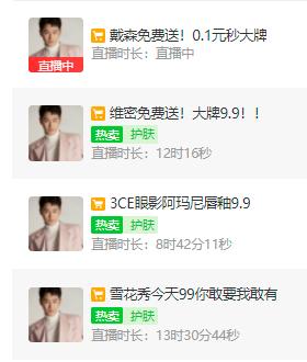在他的直播间里,除了多次出现“免费福袋”之外,“0.1元”、“1元”、“9.9元”一类的低价秒杀商品也非常多,其中不乏兰蔻、雅诗兰黛、JM等知名美妆护肤品牌。