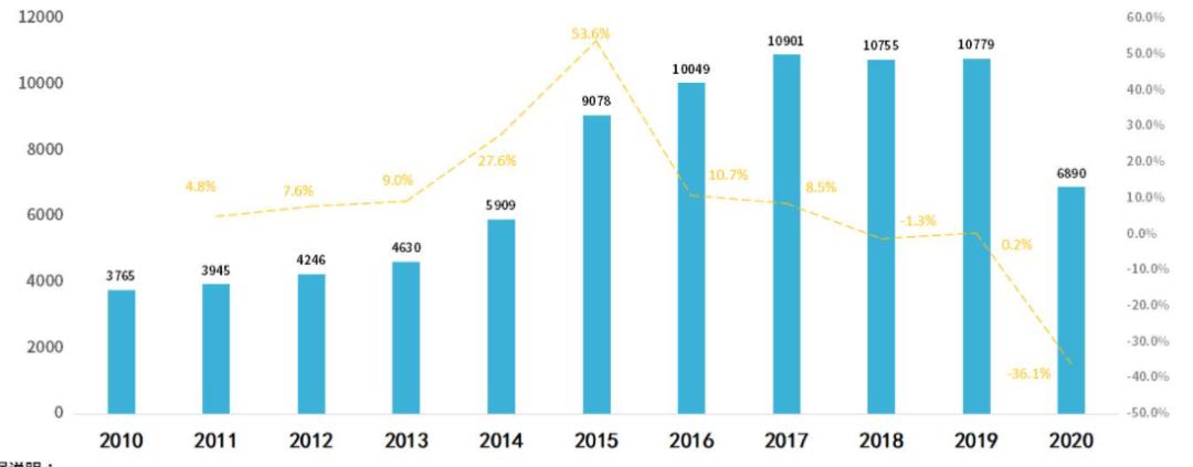 另一边是疫情影响下的市场收缩。《2020年中国歌舞娱乐行业报告》显示,2020年中国卡拉OK场所业态场所总数为47235家,同比下降7.6%;营业收入为596.9亿元,同比下降53.3%,呈断崖式下跌态势。