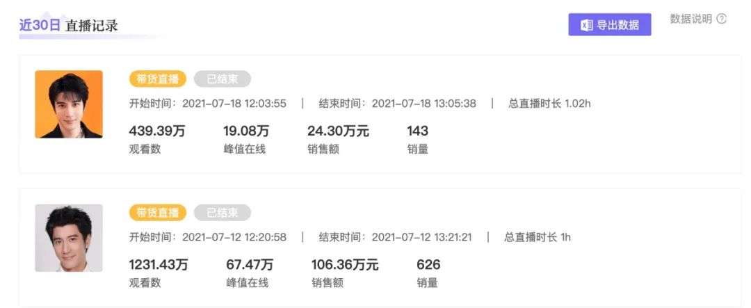 援引小葫芦网站的数据,王力宏7月12日直播卖出的月学课程销售量仅为626件、销售额刚刚过百万,这个带货成绩只能排在教育类带货榜的第7位。而他的第二次开播更是“悄无声息”,没有了“刮胡子”内容的加持,不仅很多人都不知道他的第二次开播,且这次就仅仅卖出了143件、24.3万的带货成绩。