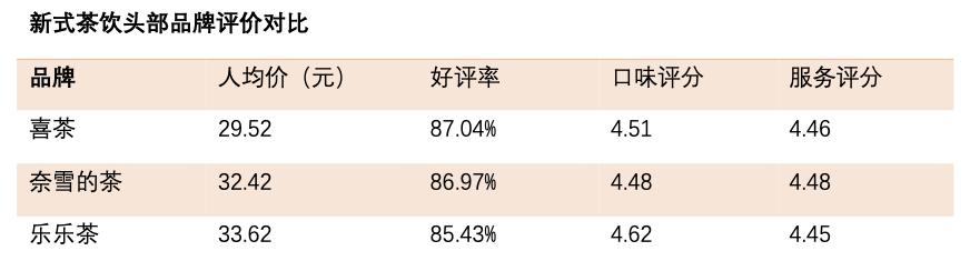 喜茶也对经典产品进行多次的优化和打磨,让消费者在高呼“爷青回”的同时,尝到不一样的惊喜。以经典饮品金凤茶王为例,这是喜茶在2013年研发的产品。此后每年,喜茶都会调整茶叶的制作工艺,降低苦涩度,让口感更为清香宜人,回味悠长,正如聂云宸曾直言“今年的金凤茶王肯定比上一年的好喝”。据窄门餐眼和国金证券研究所发布的数据显示,新式茶饮头部品牌评价对比中,喜茶的口味评分最高。