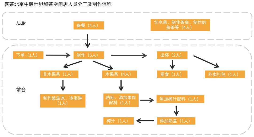 喜茶在新品研发完成后,会在门店外张贴海报进行宣传;在新品上市后三五天内,内部研发团队会通过收集消费者反馈,通过研究反馈结果来决定产品正式上架与否,因此新品储备数量往往是在售产品的5倍左右。同时,喜茶为店内的制茶流程制定了SOP,力求标准化与统一化,提高作业效率。