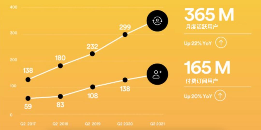 付费订阅用户在第二季度增加了700万用户,同比增长了20%,达到1.65亿,占月度活跃用户的45.2%。然而,平均每个用户带来的收入(ARPU)却降低了3%至4.29欧元,此部分减少可以被付费订阅用户数量的增长抵消。