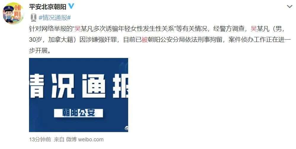 5年后,7月31日,北京警方披露,吴亦凡被刑拘。不过,跟剧中“申张正义”人设相反的是,吴亦凡这次成了那个涉嫌强奸的人。