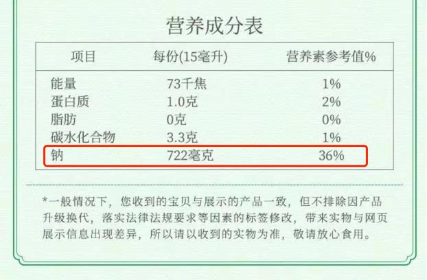 减盐:这是一个有进步的产品,它的含钠量不符合「低盐」要求,但超越了参照物。