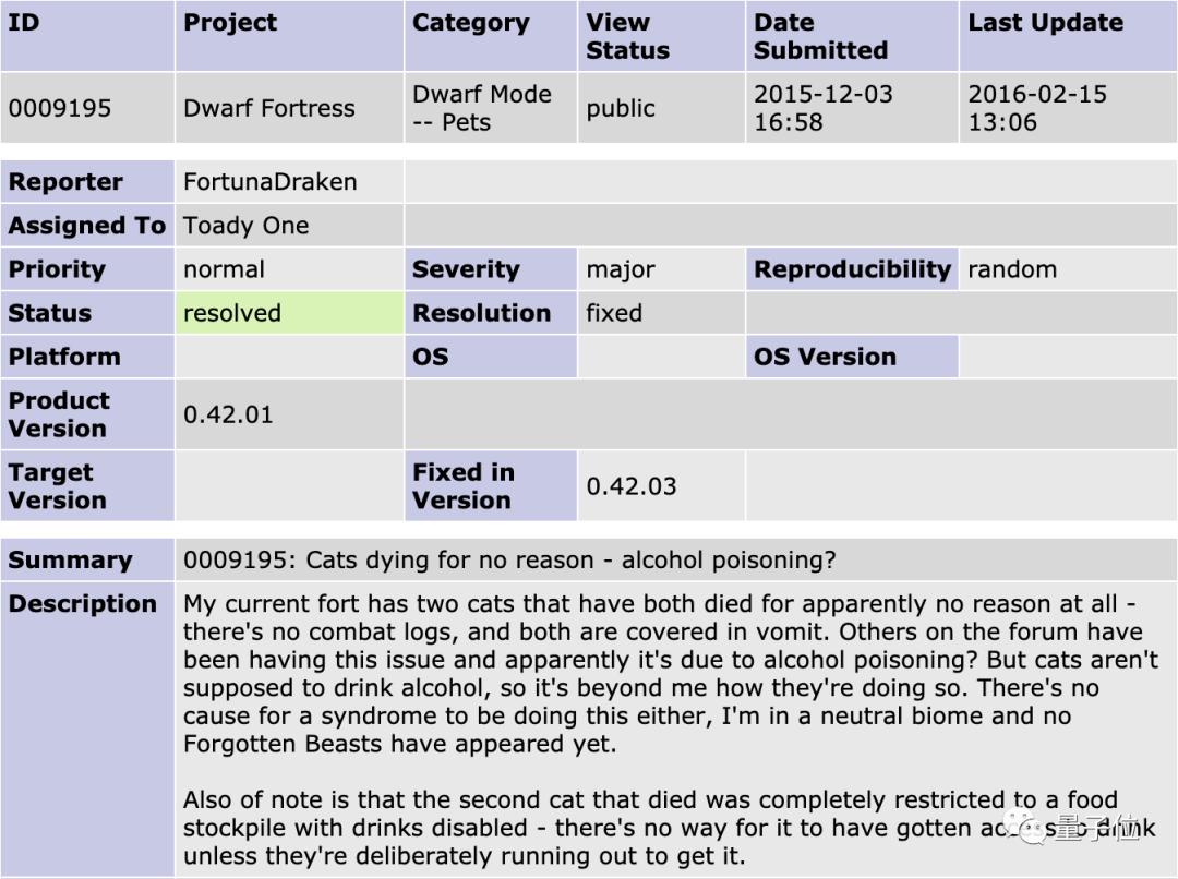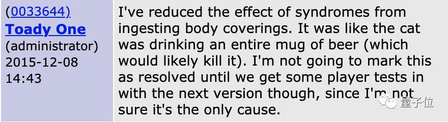 他猜测或许是酒精中毒?但游戏里猫的设定根本不会喝酒,于是他在游戏官方论坛里报告了这个问题。