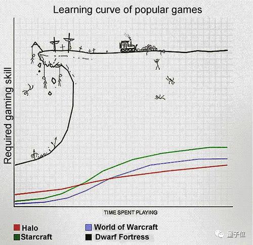规则也极其复杂,与其他游戏相比《矮人要塞》的难度曲线被调侃成这样:
