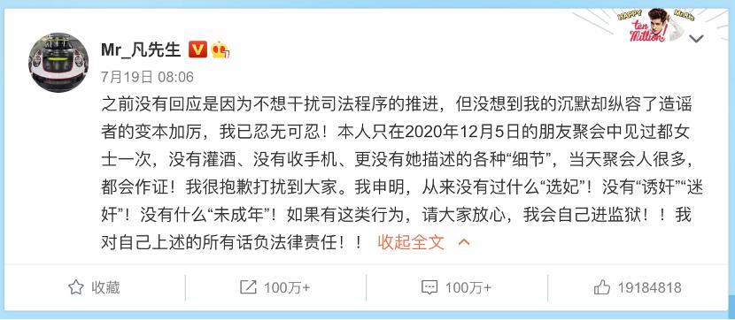 7月22日,北京朝阳警方第一次对吴亦凡事件进行通报,虽然没有直接说明吴亦凡是否犯罪,但通报也印证了都美竹和其他女孩此前的一些说法。