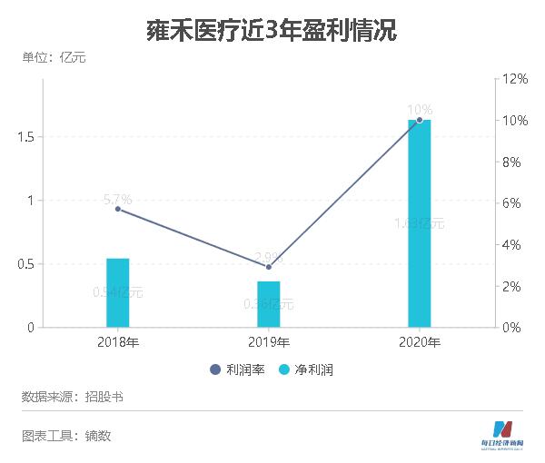 即使雍禾医疗2020年总收入已经超过15亿元,但深入分析可以发现,植发这门生意远不如想象中好赚。据雍禾医疗披露,其2018年~2020年分别实现净利润5350万元、3562.4万元及1.63亿元,利润率只有5.7%、2.9%以及10%。