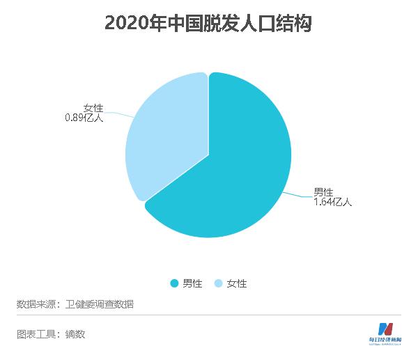 招股书中,雍禾医疗援引国家卫生健康委员会调查数据称,截至2020年,中国脱发人口超过2.5亿人,其中男性约1.64亿人,女性约0.89亿人。“脱发是毛发相关的主要问题,市场上对有关治疗的需求很高。”