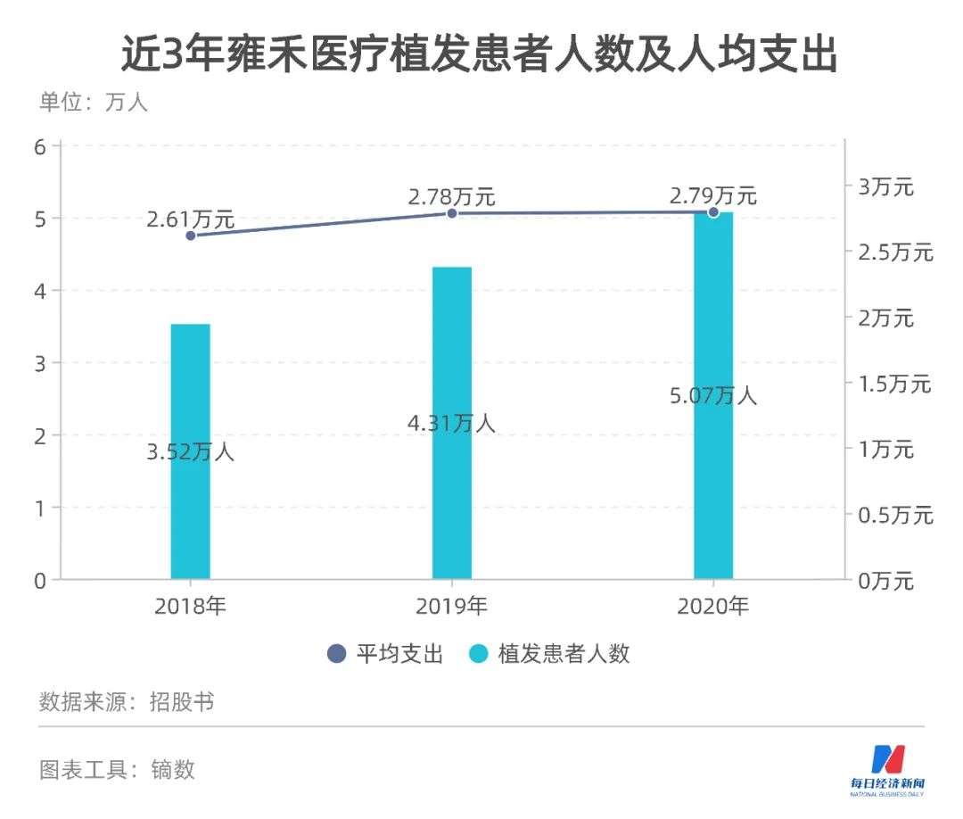 不过,记者了解到,除了总收入、就诊人数位列行业第一外,实际上,雍禾医疗的人均植发费用,也是行业第一。