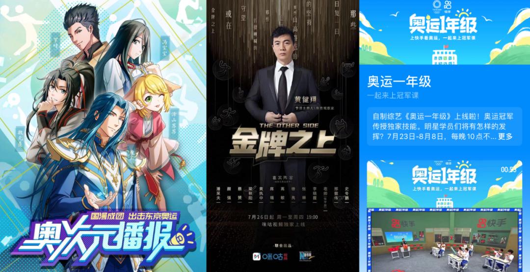 好不容易争夺到转播权,各大平台显得格外珍惜。犀牛君最近注意到,咪咕、腾讯、快手三家皆在直播或转播奥运正片之余,推出了一系列眼花缭乱的「奥运衍生节目」,打造出“辅助”观众观赛奥运的节目矩阵。