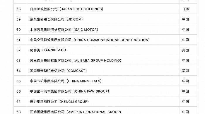 135家中国大陆企业上榜《财富》世界500强:华为第44,京东第59