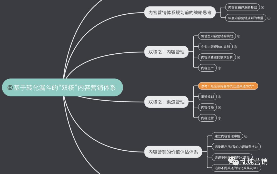 下图是从我过往多年的实践中总结的内容营销方法论,但脑图中“+”所涵盖的策略和战术层其实是在实践中不断与时俱进在优化的。分享这个图,大家不难看出,做内容营销当然就不是写写文章、策划个活动那么简单。